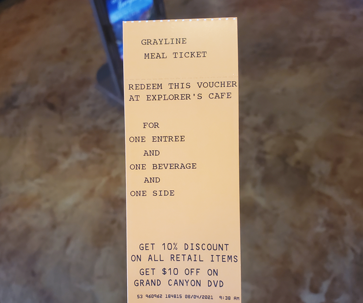 아침은 6시에 일어나서 Earl of Sandwich로 해결하고 바로 집결지인 Aria 호텔로 출발했다. 집결 시각은 7시 30분. 두 번째로 이용한 Earl of Sandwich는 메뉴선정의 실수 때문에(그냥 Earl's Club이랑 Hawaiian 주문할걸) 그저 그런 맛이었다. 호텔 편의점에 들러서 물 두 병을 더 사서 출발했다. 네바다의 여름은 엄청나게 덥다.