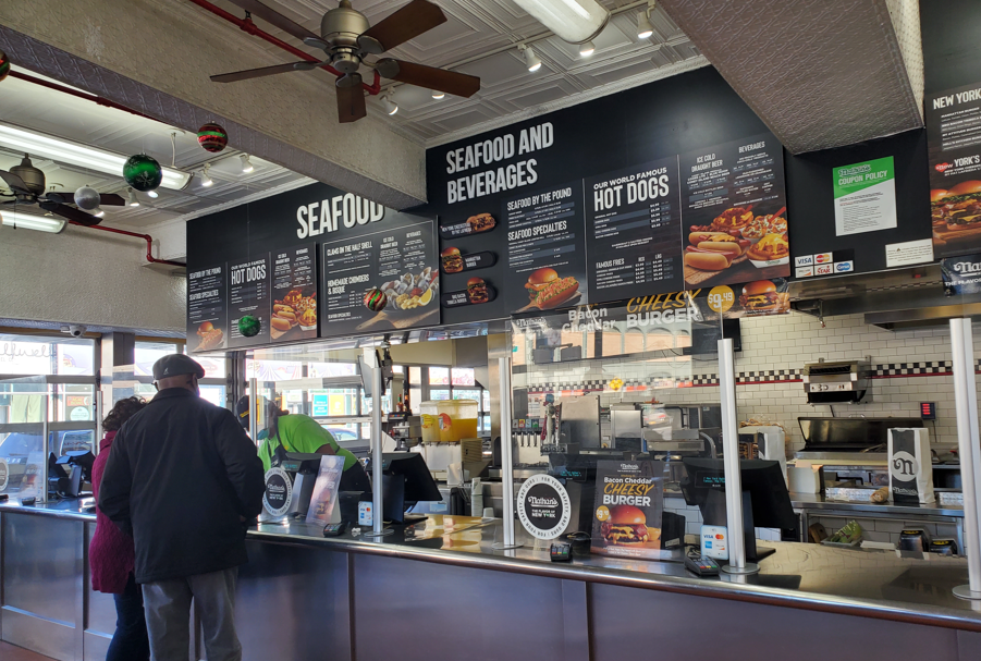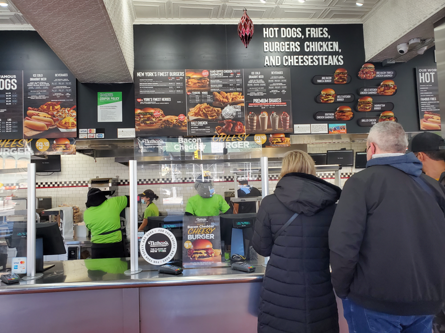 지하철에서 내려서 화장실을 가야해서 여러 군데 화장실을 들렀는데(음료라도 하나 사주고 써야지 그래도..) 대부분의 가게들이 파리만 날리고 있었다. Nathan's는 놀랍게도 손님이 가득 차서 줄을 서서 먹고 있었다. 이래서 유명해져야하나보다 싶기도.. 유명해지려면 움식이 맛있어야 하지만.