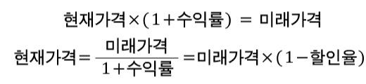 할인율은 수익률의 역수로 정의된다. 수식으로 쓰면 다음과 같다.