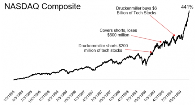 마지막으로 닳고 닳은 트레이더의 실수를 언급하겠다. 오늘의 주인공은 드러켄밀러(Druckenmiller)다.