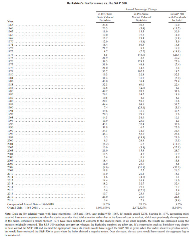 저희의 연례보고서를 오랫동안 읽어오신 분들은 제가 이 편지를 시작함에 있어 만들어낸 변화를 눈치채셨을 것입니다. 거의 30여년 간 첫 단락은 버크셔의 주당 장부가치의 백분율 변화로 시작했습니다. 이제 이 관습을 버릴 때가 온 것 같습니다.