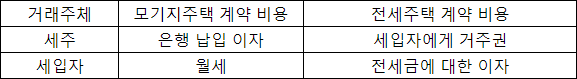 위 그림에서 전세 vs 모기지의 비용/수익 구조를 비교하면 세주(주택 구매자)에게는 이자비용이 발생하지 않기 때문에, 주택 소유권의 획득이라는 측면에서만 보면 전세가 모기지보다 압도적으로 유리한 제도라는 것을 알 수 있다. 하지만 세입자에게 불리한 것도 아니다. 세입자 입장에서는 전세를 들어 살게 되면 그 전세자금의 이자에 해당하는 만큼의 기회비용이 발생하지만, 대신 월세를 내지 않아도 되기 때문이다. 그러므로 전세제도는 (주택가격이 동일하다는 전제 하에)세주-세입자 사이에 발생하는 Win-Win 거래인 셈이다.