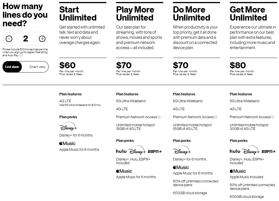 간단(?)하게 Verizon의 무제한 Monthly Plans(월별 요금계획?)을 알아보면... https://www.verizon.com/