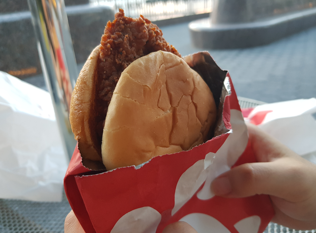 이 매장은 좀 특이하게도 현금을 받지 않고 오로지 카드로만 결제를 받았다. 가격은 맥도날드나 버거킹과 비슷하다. 살짝 싼 것 같기도 하다. 쉨쉨보다는 확실히 저렴했다. 쉨쉨에서 햄버거 + 콜라 먹을 돈이면 여기선 세트(버거 + 콜라 + 감자튀김)를 먹을 수 있는 것 같다. 나는 Spicy Chicken Sandwich를 주문했다. 매콤짭짤한 맛을 기대함..