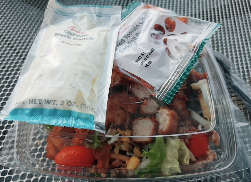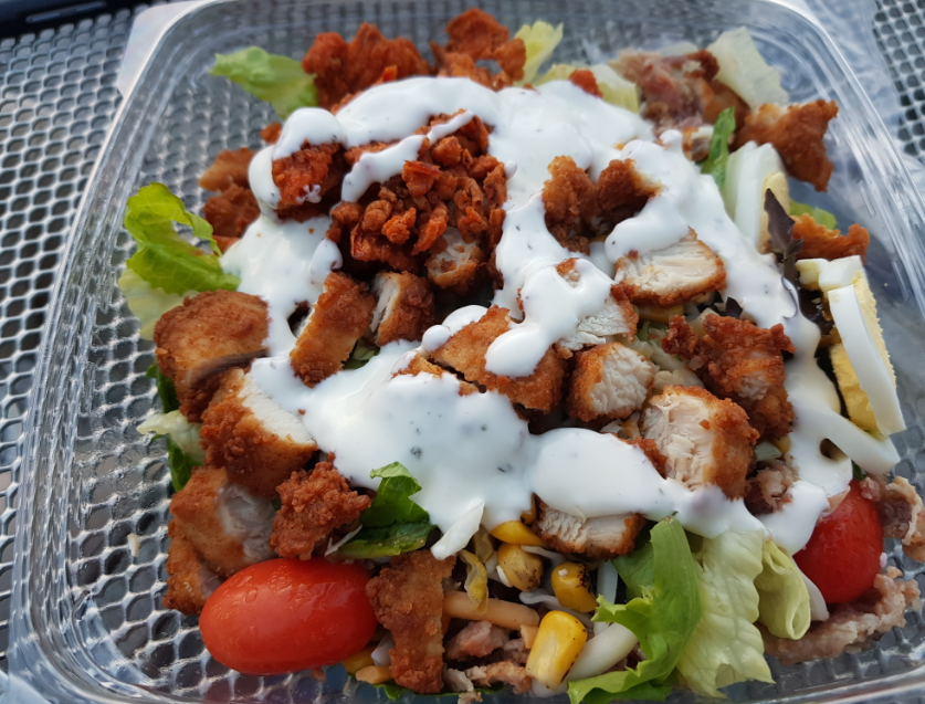 지난번에는 Market Salad를 주문했는데, 미국 특유의 blue cheese가 들어있는 부분의 향이 좀... 취향이 아니라서 반 정도밖에 못 먹었다. 빼달라고 주문할지, blue cheese가 없는 다른 메뉴를 주문할지 고민하다가 아예 안 들어가는 게 Base인 Cobb Salad를 골랐다. 미국의 패스트 푸드 점에서는 조리하는 사람들이 가끔씩 재료를 빼달라는 주문을 까먹기도 하기 때문이다.