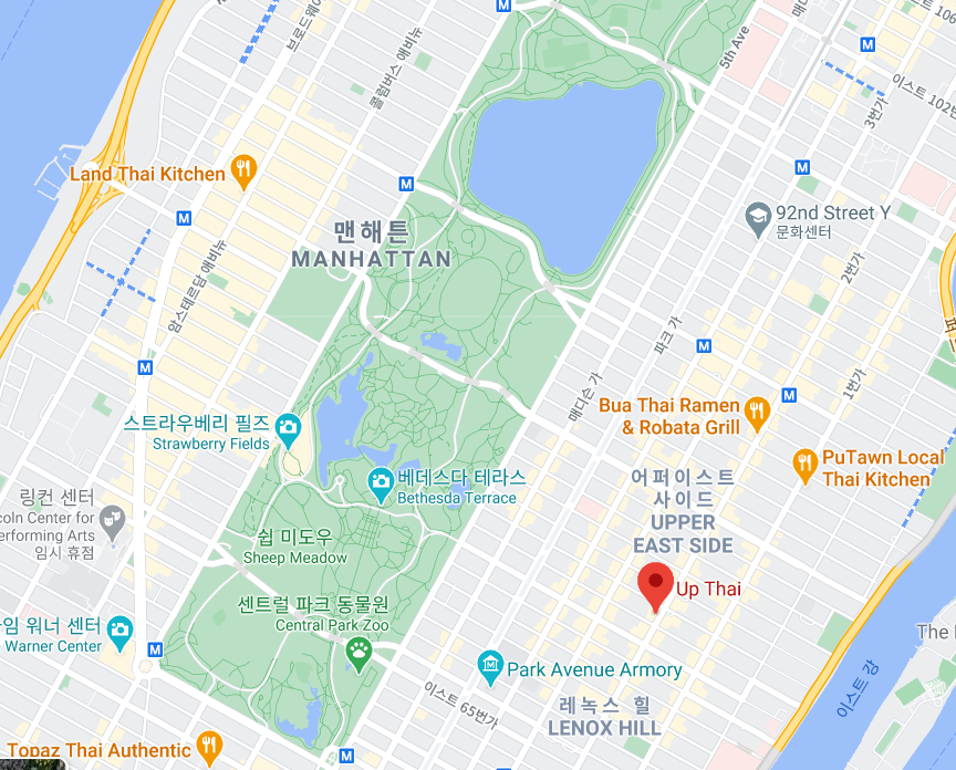 여행 경로를 짤 때 참고할 만한 사항이 있다. 맨해튼의 지하철은 남북쪽으로는 다 뚫려있지만 동서로는 뚫려있지 않다. 특히나 동맨해튼(East Manhattan)은 지하철 노선이 많지 않다. 따라서 서맨해튼(West Manhattan)으로 가는 일정을 같은 날로 집어넣으면 이동이 힘들 수 있으니, Up Thai를 방문할 생각이 있으면 그 날은 동 맨해튼 일정을 잡을 것을 추천한다.