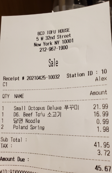 봄이 오고, Indoor dining 금지가 풀리고 나서 뜨거운 요리가 먹고싶어서 작년 가을에 갔다가 사진 찍는걸 잊어서 포스팅하지 못했던 북창동 순두부를 다시 방문했다. 나름 뉴욕의 명물이라 사람이 많을 것 같은 시간에는 전화를 미리 해보고 가야한다. 이 지역의 손님들은 동양계 + 라틴계가 많다. 백인도 꽤 많은 편이고..
