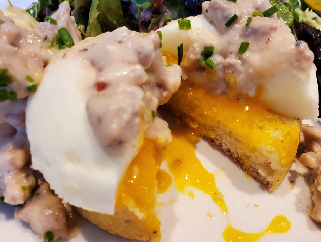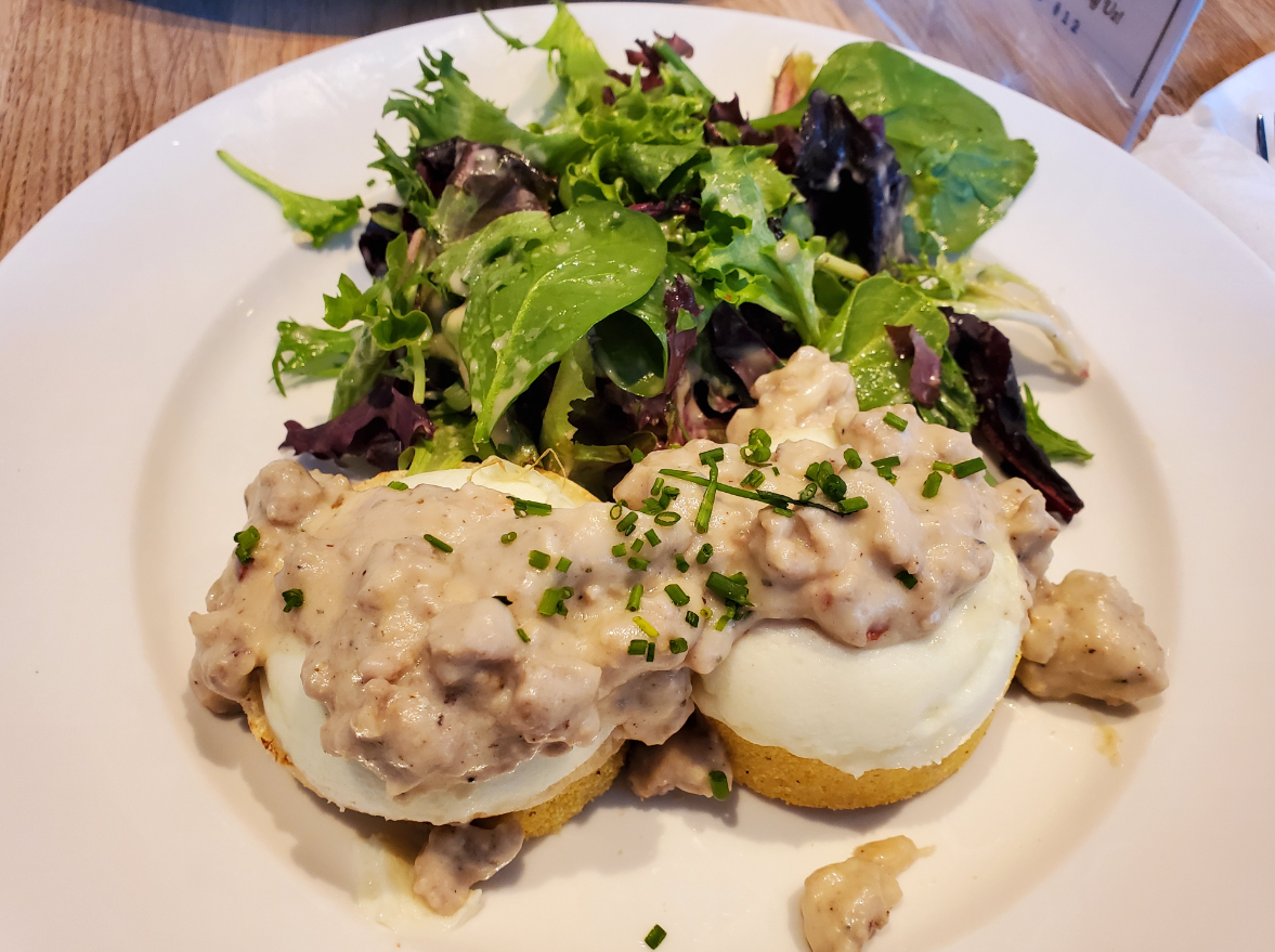 아내의 선택: 런치 스페셜 - Biscuit & Gravy: 잉글리쉬 머핀에 돼지고기를 얹은 요리라고 한다.