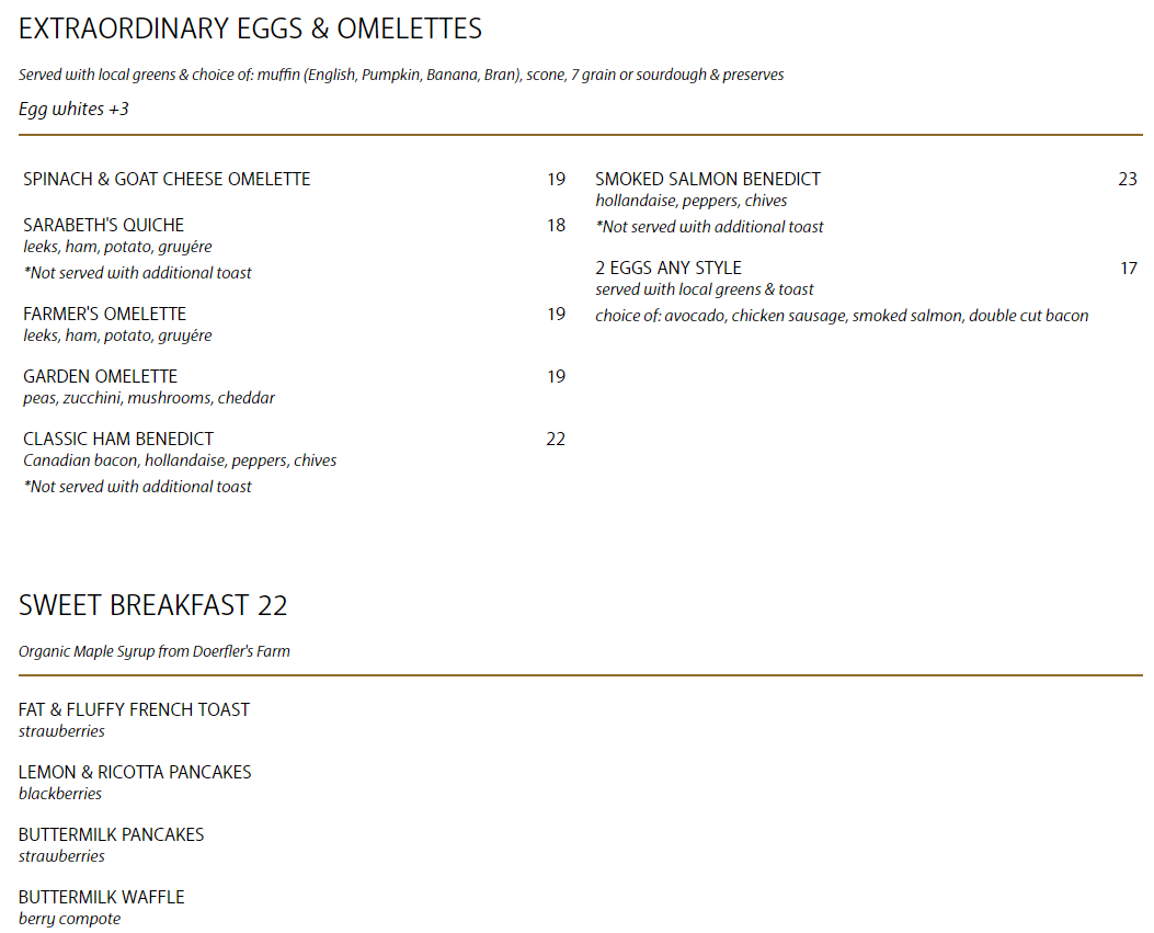 전체메뉴 링크: sarabethsrestaurants.com/locations/tribeca/